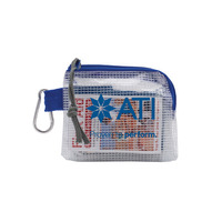 Product Notes: Take care of cuts, scrapes and other small injuries with our Outdoor First Aid Kit! Included in this kit is one blister bandage, a 3.5 gram packet of sunscreen, a pair of tweezers, two insect sting wipes, a First Aid handbook, four 3/4" x 3" bandages, 10 junior-sized bandages, an antibacterial hand wipe, two alcohol prep pads and three antiseptic swabs -- all tucked away in a handy 4.75" x 4" nylon zippered bag with a carabiner clip